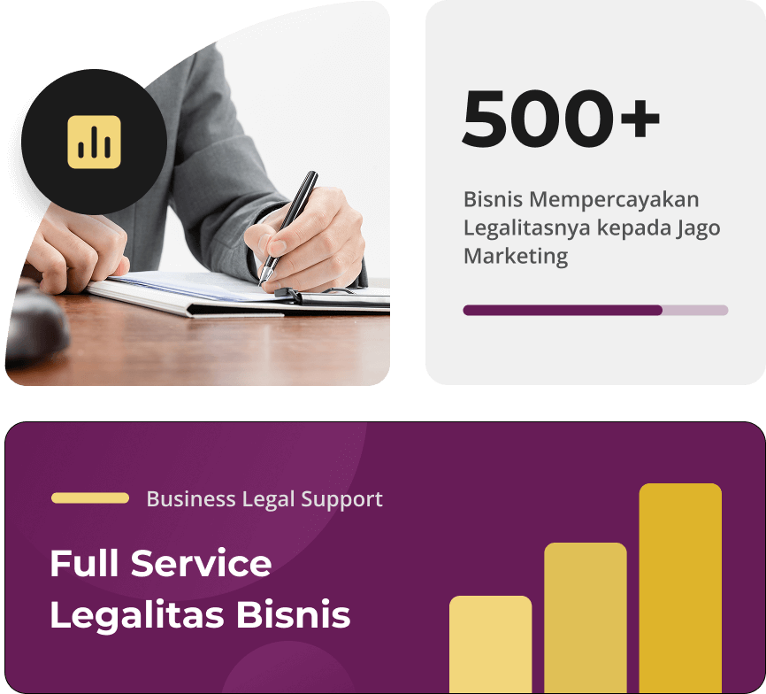 Kami membantu legalitas usaha Anda berjalan mulai dari pendirian badan usaha hingga perizinan, terintegrasi dengan strategi pertumbuhan ala Jago Marketing.